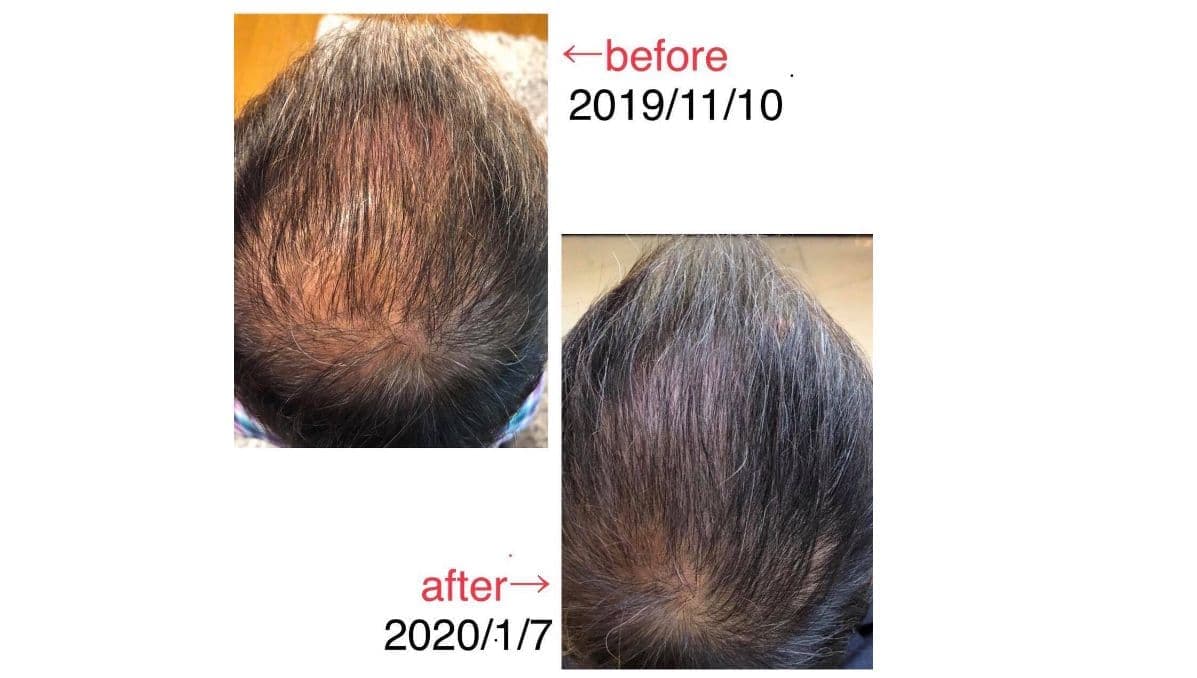 幹細胞培養上清液と東洋医学的びわきゅうを融合させた独自の育毛メソッドの効果についてお客様の使用前後を交えて、説明しています。